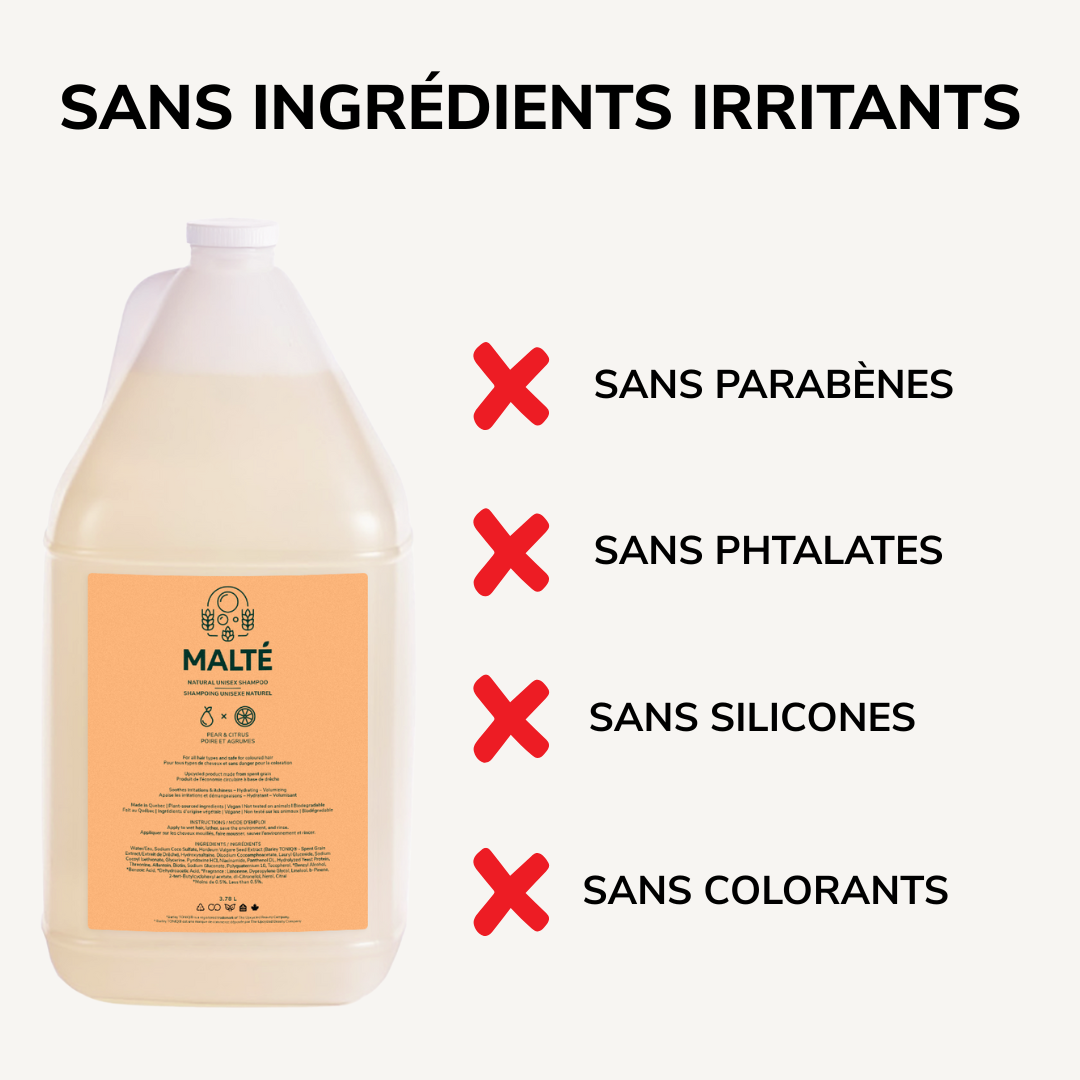 Appliquer une petite quantité de shampoing sur les cheveux mouillés. Masser doucement pour faire mousser, puis rincer abondamment. Répéter au besoin. Pour un résultat optimal, poursuivre avec le revitalisant Malté. Utiliser 2 à 3 fois par semaine, ou selon les besoins de votre cuir chevelu. Les bienfaits se feront sentir dès la première utilisation : cuir chevelu apaisé, cheveux plus doux et légers.