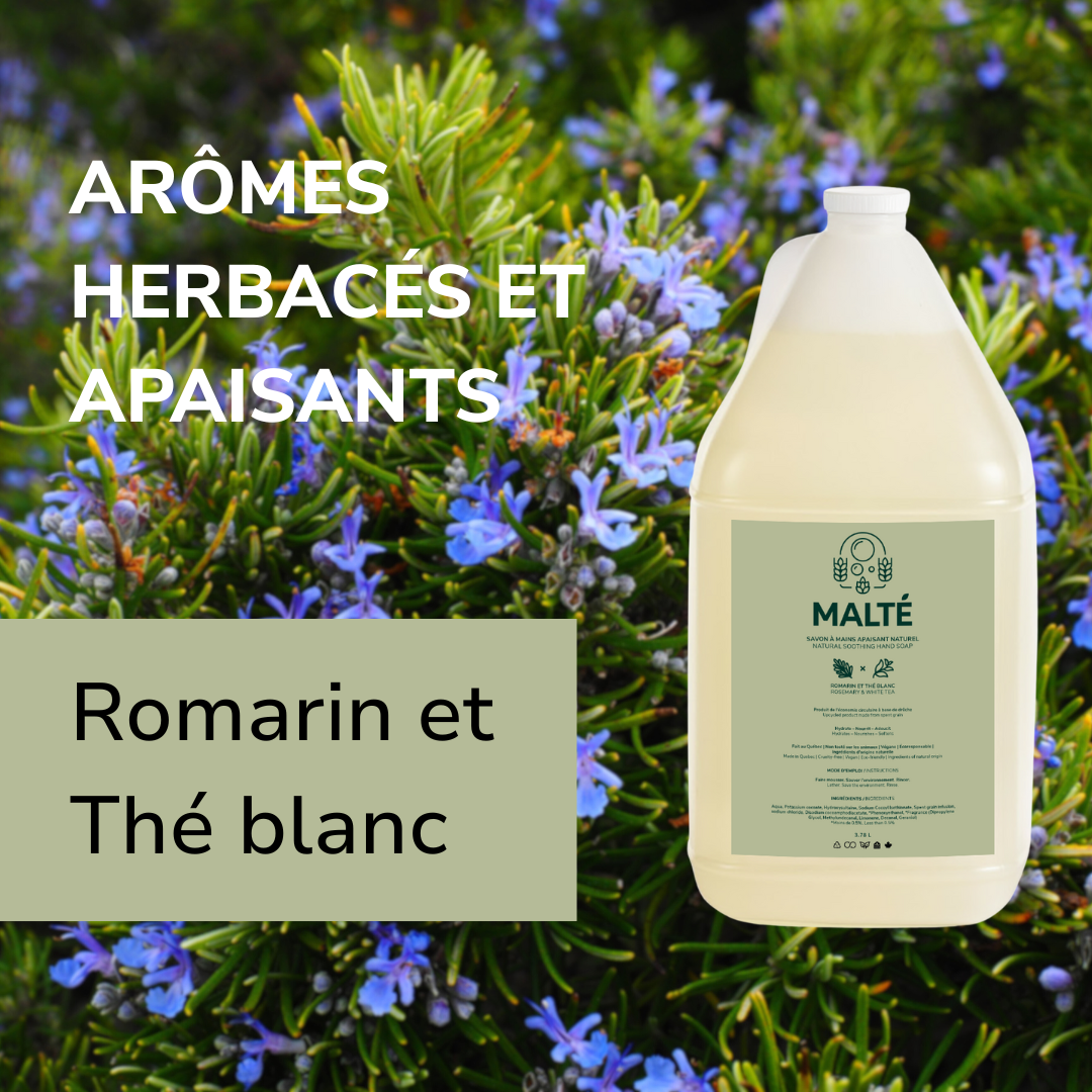 Découvrez un mélange rafraîchissant de romarin aromatique et de thé blanc délicat, inspiré par les instants de calme en pleine nature. Parfait pour les peaux sensibles, notre savon à mains est formulé avec des ingrédients doux qui nettoient sans irriter. Grâce au Barley TONIQ® et à la vitamine E, il apaise la peau, aide à prévenir les irritations et maintient l’hydratation naturelle. Sa mousse abondante laisse les mains propres, douces et confortables après chaque lavage.
